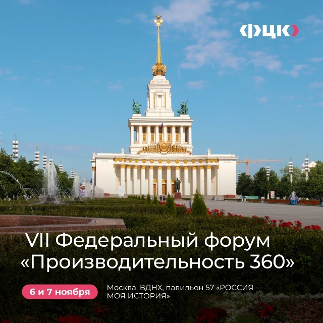 6–7 ноября на ВДНХ (павильон 57 «РОССИЯ — МОЯ ИСТОРИЯ») пройдёт VII федеральный форум «Производительность 360» — ключевое событие федерального проекта по повышению производительности труда.